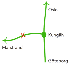Kör E6 mot Oslo 30 km till Kungälv. Sväng av mot skylt "Marstrand". Efter ca 15 km sväng vänster vid Gullbringa Golf&Countryclub